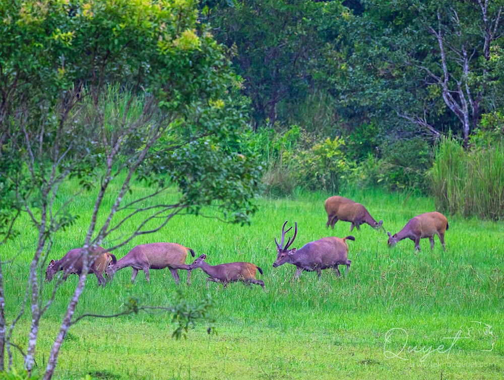 Buổi chiều: Đạp xe tìm kiếm nai, hoẵng, công xanh, đa đa, vẹt, te vặt, chim cu ở khu vực trảng cỏ.